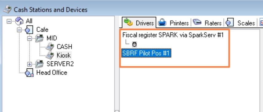 - In the Service > Stations and Devices directory, select the restaurant and the previously created cash register server