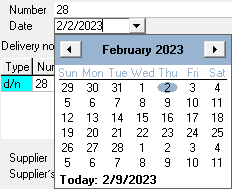 The Date field is automatically set to the current system date. If necessary, you can set any other date. To do this, enter the date in the field in the format determined by the Windows settings using the keyboard, or select from the calendar using the selection button from the list.