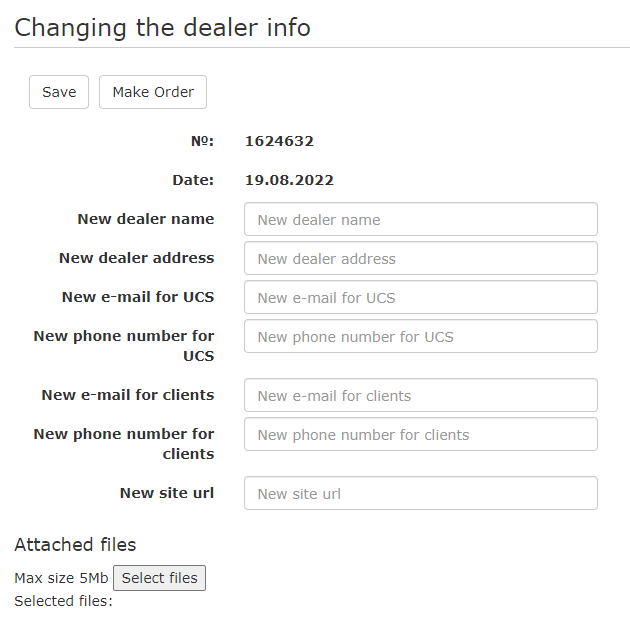 To change the dealer's data on your own, you need to make a corresponding order in the Orders menu.
