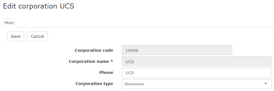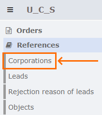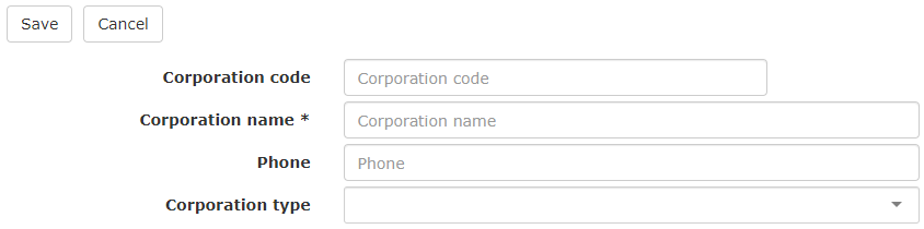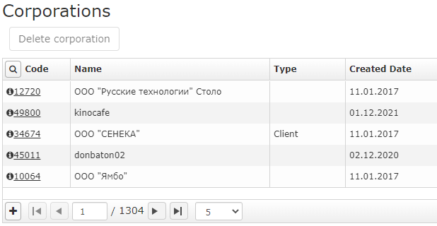 When you click on the corporation code in the list, the card of the selected corporation will open.