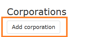 Above the list of corporations, click the Add Corporation button. The second option is to press the plus button + under the list of corporations.