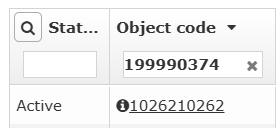- Enter the object you are looking for in the Object Code field and press Enter. The system will show you objects that match the criteria.