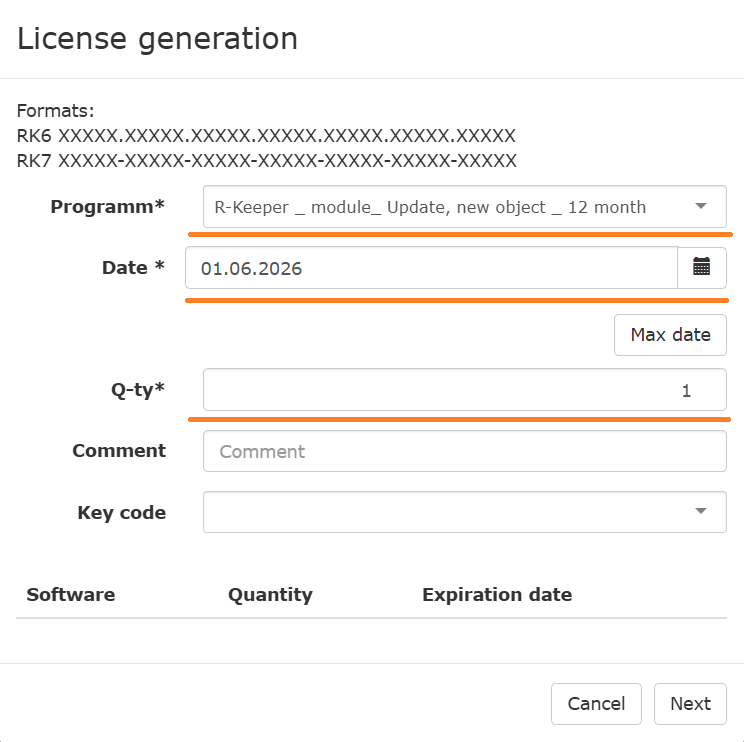 Not all products require generating a request code. If you don't need it, you won't need a key either.Select the required license type in the License Type field: