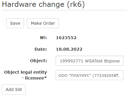 The rk6 hardware change order removes the licenses for r_keeper 6 and releases the master licenses at the selected object.