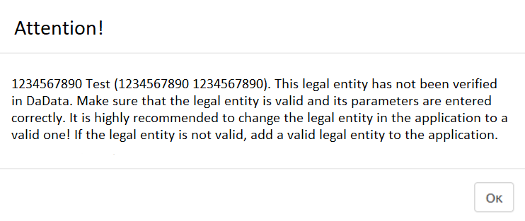 Russian legal entities of the payer are checked for relevance by the DaData service.