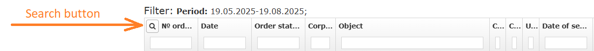 In addition to the filter, it is possible to find a request by all available columns. To open the search, click the icon above the list of requests: