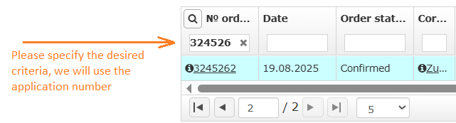 Enter the Order number and press Enter. Orders will be filtered by the specified criteria.