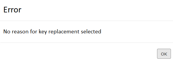 - Fill in the required field Reason for key replacement