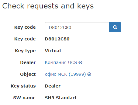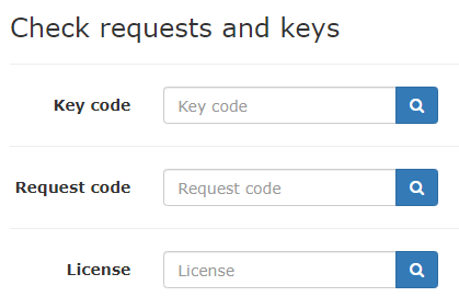 You can get information about a key or license through the Check requests and keys menu. To do this, go to this menu item and specify any of the following details: