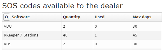 To find out the number of available SOS codes and their maximum use periods, go to the SOS codes available to the dealer section. In the Max days column, you will see the maximum number of days that the SOS code will be valid.