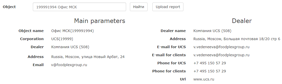 To get information about an object, enter its number in the Object field and click the Find (Найти) button. The report can be downloaded in PDF. To do this, click the Upload report button.