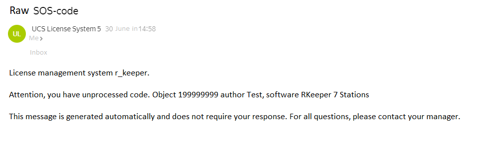 Pay for the software for which the SOS license was re-generatedClear the SOS code. To do this, write a letter to license@rkeeper.ru with reasons for using the code and the late payment of the invoice.
