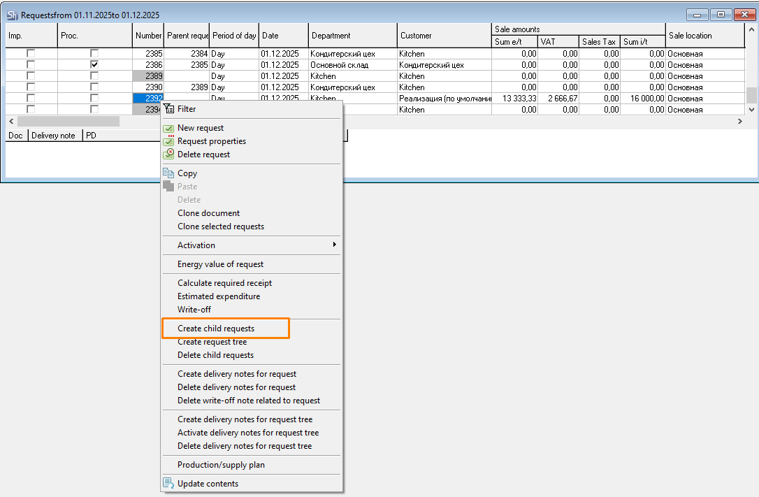 Child requests will not be created for goods without a link to sets and without specified routes on the goods card.