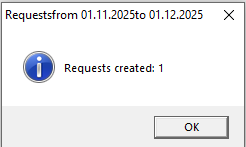 After setting the quantity conditions, a window will appear containing information about the number of child requests created.