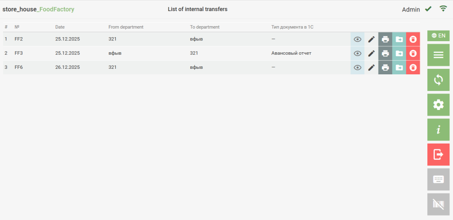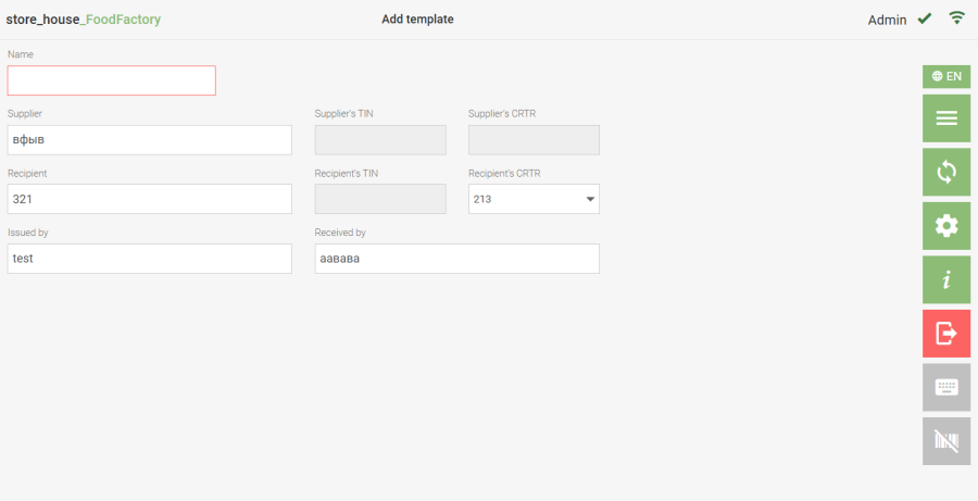 From any document, you can create a template for further use when creating documents. You can create a template from a document in two ways: ● click the button for the document of interest in the delivery notes list. ● click the button in the document view mode; After this, the template creation window will open, into which all information from the source document will be transferred. Further actions with a template created based on a document are performed in the same way as with a regular template.