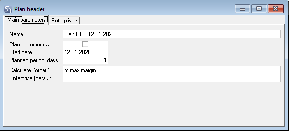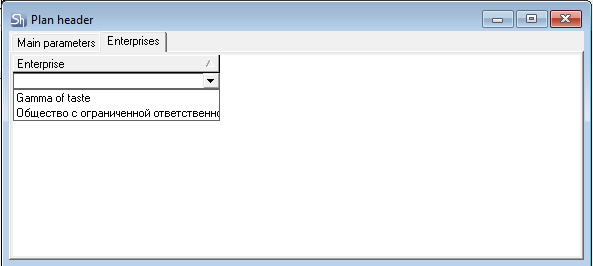 Since at the time of this user manual release, a plan title can only be created for one enterprise, the same enterprise must be selected on both the "Main Parameters" tab and the "Enterprises" tab.