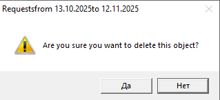 To delete a request, select it and use the Delete Request item in the context menu or the main menu item "Document" -> "Delete Request". The system will then request confirmation for the operation.