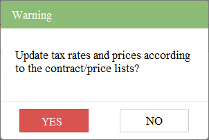 If you click the "Yes" button, the price and tax rate values in the delivery note on the Goods tab will be set according to the price list values for the specified date. If you click the "No" button, the price and tax rate values in the delivery note will not change.