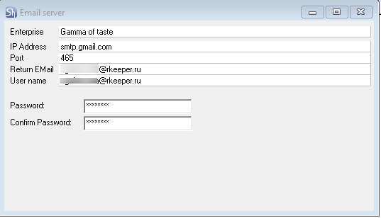 Enterprise – from the drop-down list, select the r_k StoreHouse Pro enterprise for which the created mail server will be used.