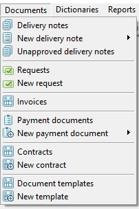 To manually create a request, use the main menu item "Documents" — "New Request" or use the New Request item in the context menu from the request list window or the button
