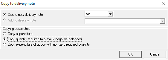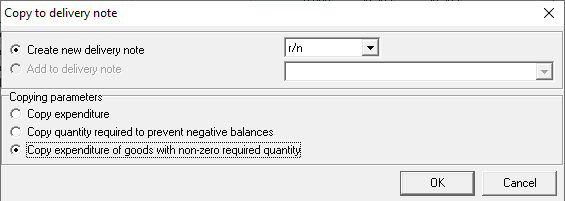 In the Estimated expenditure window, call the context menu and select the "Copy to Delivery Note" item.