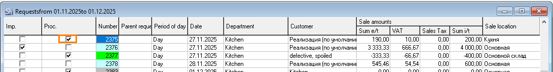 The system allows processing requests with insufficient goods quantity at the time of write-off. Compensated entries will be automatically generated – the missing quantity of goods required for write-off will be posted. As a result of the write-off based on the request, the balance for such goods will be zero.
