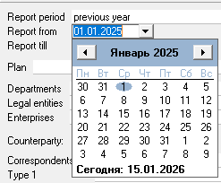 To define the period for generating the order list, you can use the predefined list of periods; for this, select a value in the "Report Period" field.