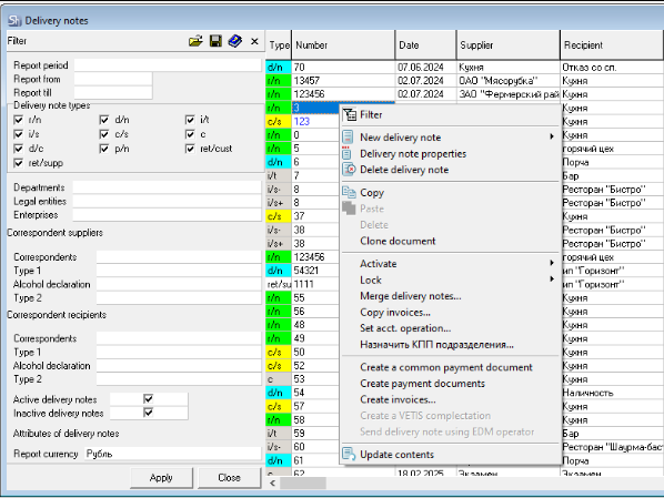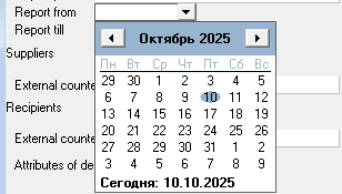 . - Filling in the Date field is the same for all types of documents and report filters.
