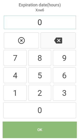 If the flag "Set Expiration Date Before Printing" was set in the print settings, then after selecting the goods item UOM, a window for entering the shelf life in hours for the selected goods item will open.
