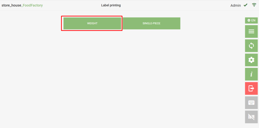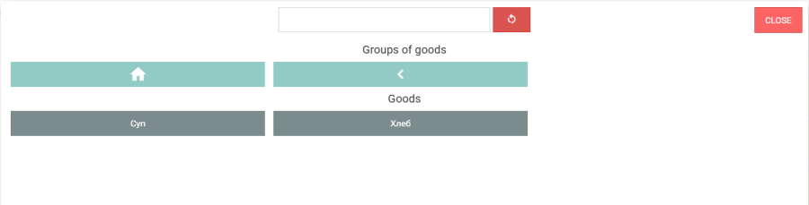 Place the goods item on the scales. If the scales are connected and configured correctly, the goods search mode will open, where you need to select the required goods item. A goods item unavailable for label printing will have a light grey button background.