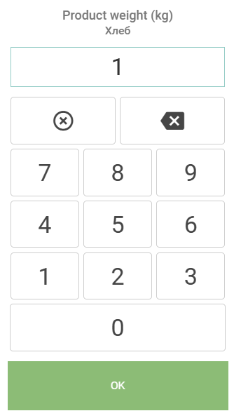 If the flag "Enter weight without connected scales" is enabled, the goods item weight is entered manually. After selecting the goods item, a window for entering the goods item weight will open.