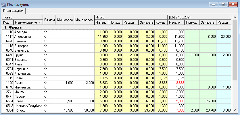 When selecting such a plan title in the filter of the "Procurement Plan", the report will always be generated for the next date from the current computer date. The plan will be displayed for one date.