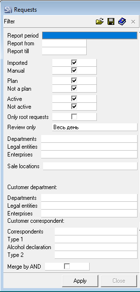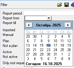 To define the period for generating the list of requests, you can use the predefined list of periods; for this, select a value in the "Report Period" field.
