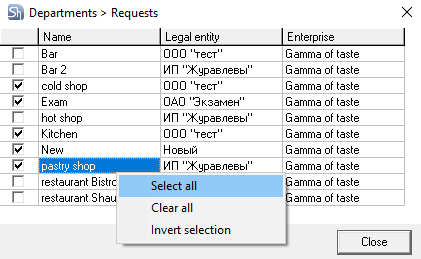 If you need to clear the filled filter fields "Department", "Legal Entities", and "Enterprises", use the Reset All item in the context menu. This will clear the selected values in all three fields. If you need to clear the value in one field, you must clear all values in the corresponding window.