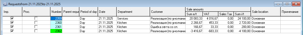 For convenience when working with requests, a separate department "Services" can be created and assigned for the write-off of service goods.