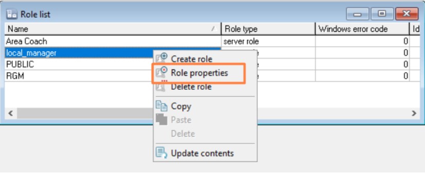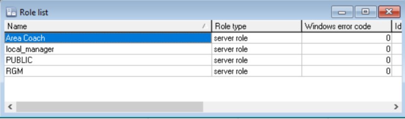 To view existing user roles in the Sdbman application, select the main menu item "Users" - "Role List".