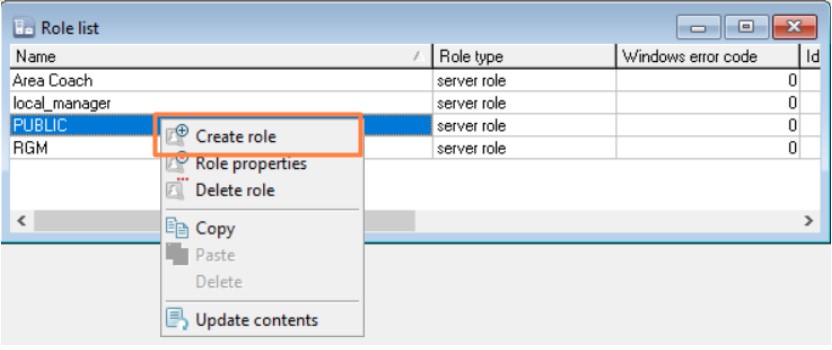 To create a new role, select the main menu item "Users" - "Create Role" or select the "Create Role" context menu item, or press the button