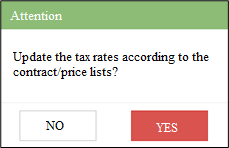In receipt and expenditure delivery notes, when editing the date, supplier/recipient, or department, a message with the question "Update tax rates and prices according to the contract/price lists?" will appear.