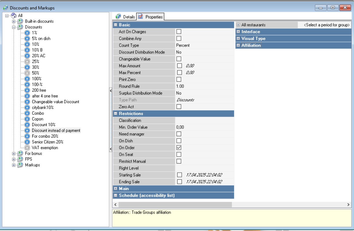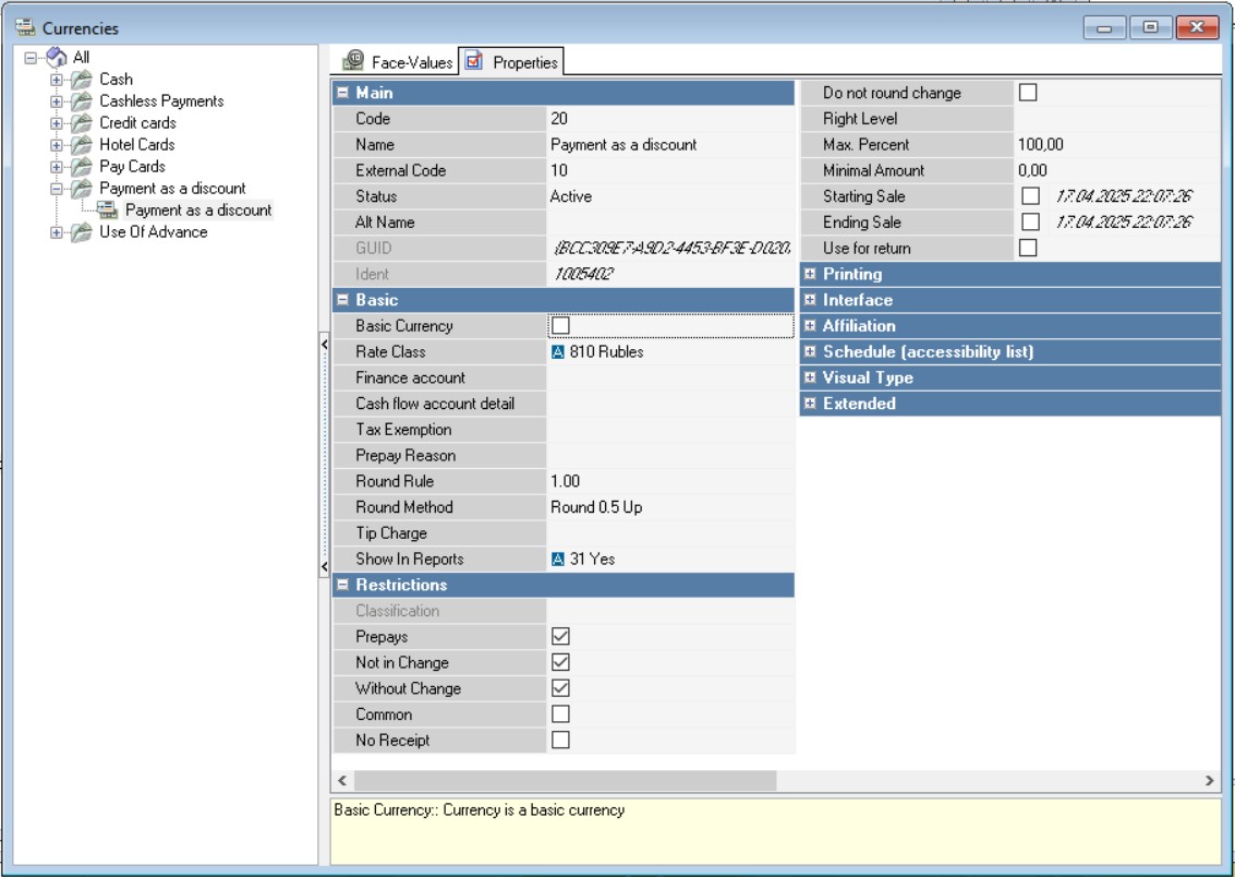 After creating the discount, it must be added to currencies so that it appears on the cash register. To do this: