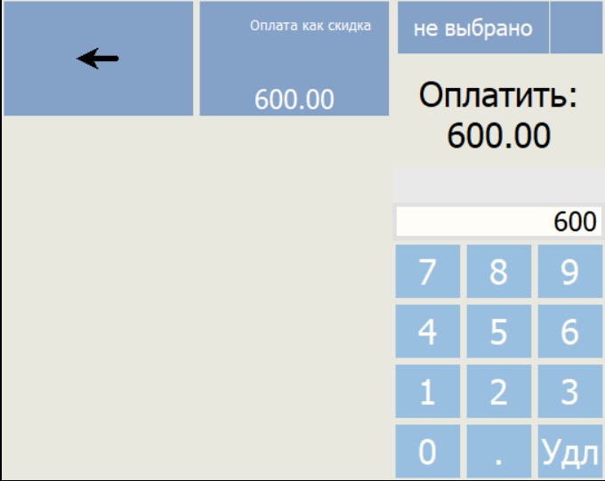 - Using the numeric keypad, enter the full amount of the order and click the Payment as a Discount button