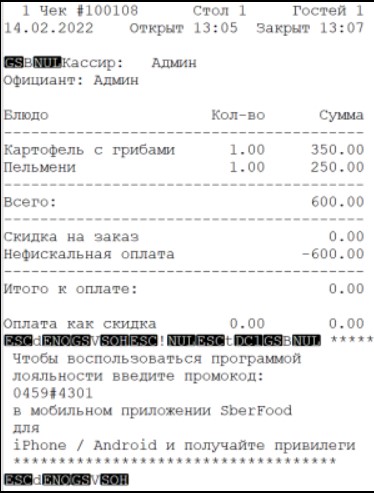 - If everything is configured correctly, then the order will close automatically, and the receipt will contain the following information: