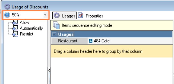 If no specific rule has been selected for a discount or markup, by default it is considered allowed to be used.